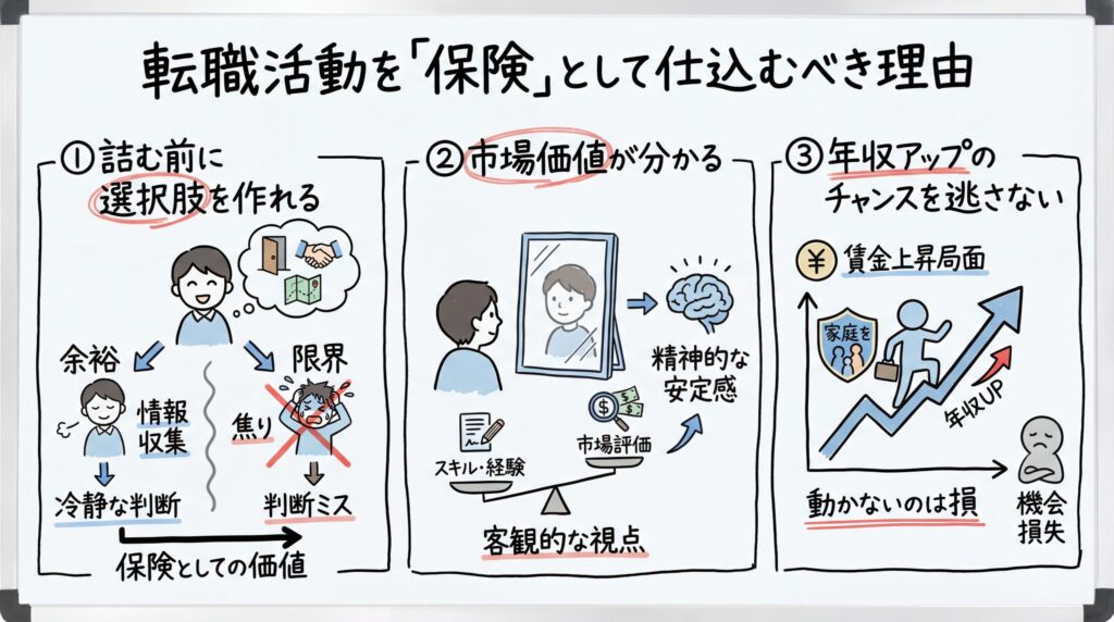 転職活動は「保険の仕込み」として、動けるうちに進めておく。