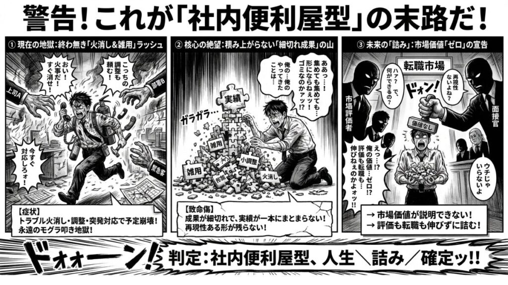 なるよ。ただ、”評価される形”で残ってないだけだ。火を消すのは大事。でも、その火を”なぜ消せたか”を言語化できないと、市場では通らない。そこを翻訳するのが、次のステップだ。