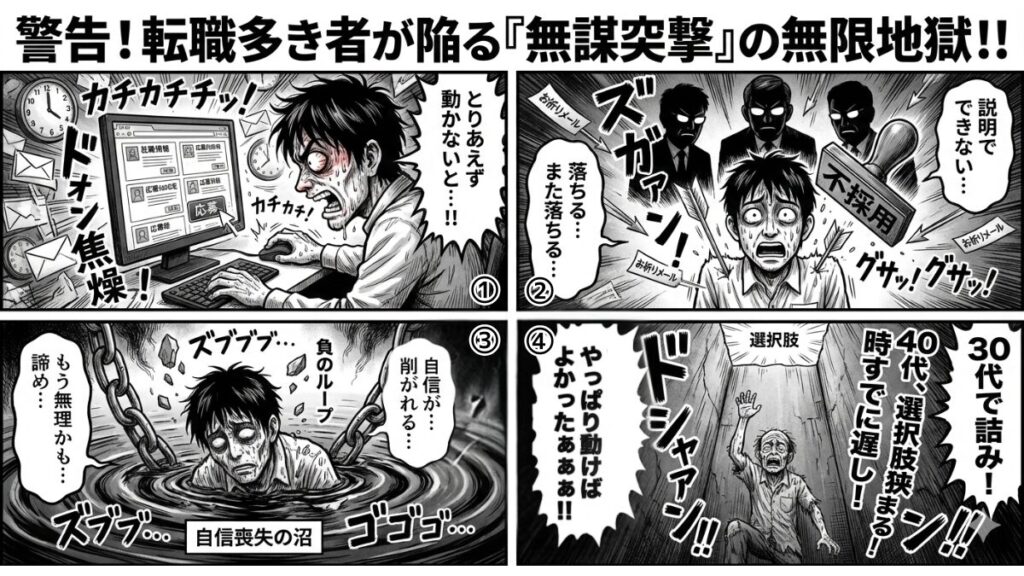 自信がどんどん削がれていきます。気づいたら「あ、もう無理かも…」という諦めモードに入り、転職活動そのものが長期化する。心を持ち直したころには、年齢だけ重ねている。