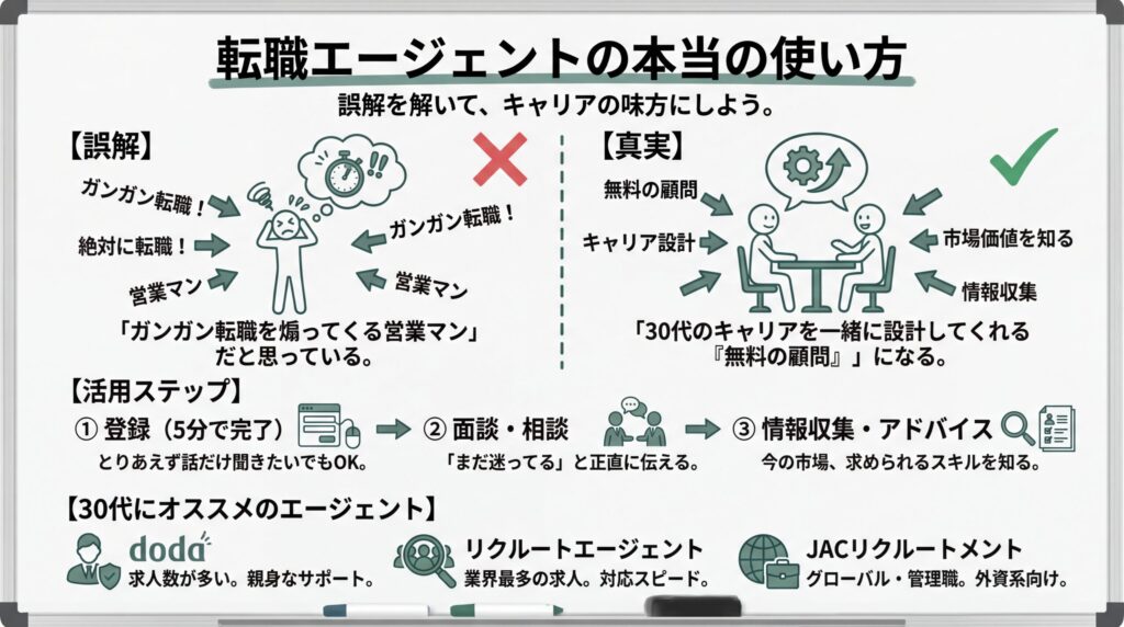 30代のキャリアを一緒に設計してくれる「無料の顧問」になってくれます。