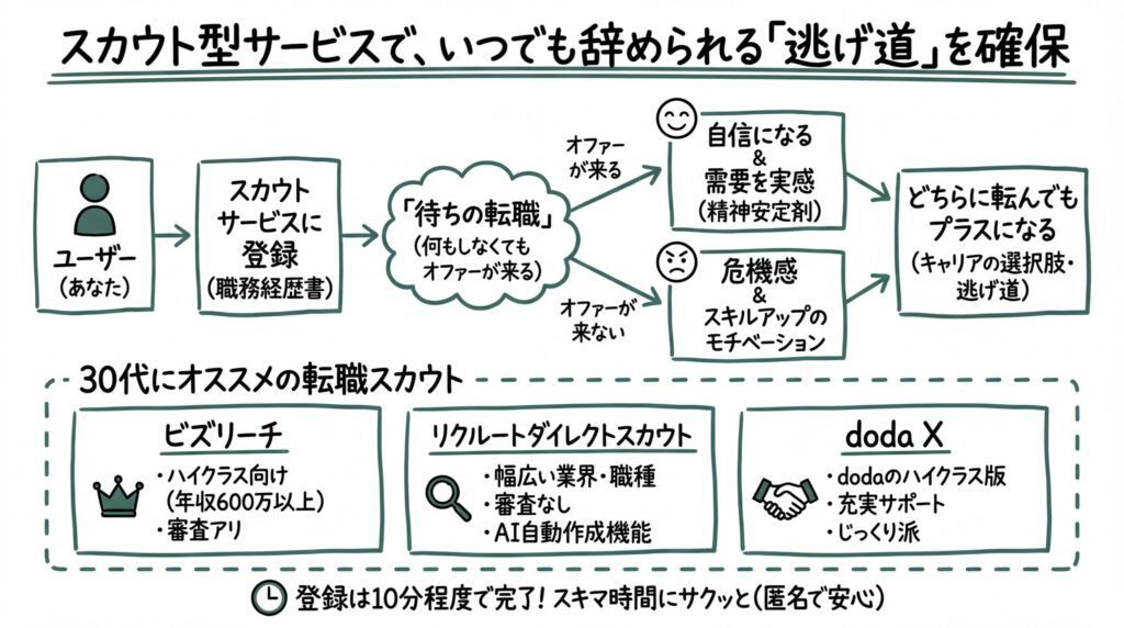 スカウト型サービスで、いつでも辞められる「逃げ道」を確保