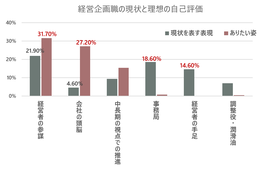 つまり、経営企画部の多くは「やりたいことをやれていない」状態にあり、日々その板挟みに苦しんでいるというのがリアルなんです。