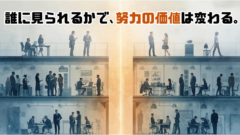 このような経験から感じたのは、「誰に見られているかが重要」ということ。どれだけ努力しても、その業務が社内で完結していたり、外部から見えづらいものだったりすると、昇進の対象にはなりにくい傾向があります。