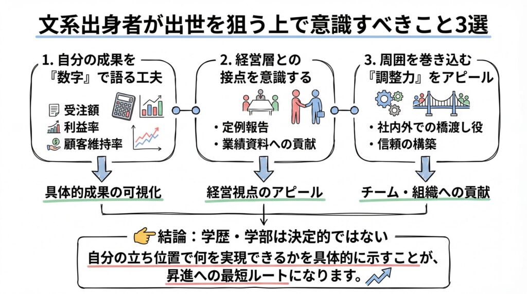 たとえ現時点で出世コースから外れていると感じていたとしても、キャリアの巻き返しは十分可能です。出世の分岐点は「何をやったか」だけでなく、「誰が見ていたか」「どう伝えたか」にも大きく左右されます。