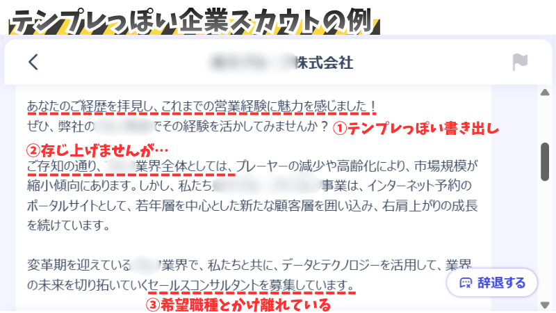 • 本気度の低い企業スカウトも、冒頭1文で見切ってヨシ