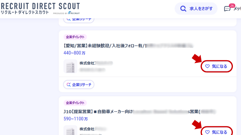 • 企業からの「本気スカウト」を狙いにいく(気になるボタンも活用)