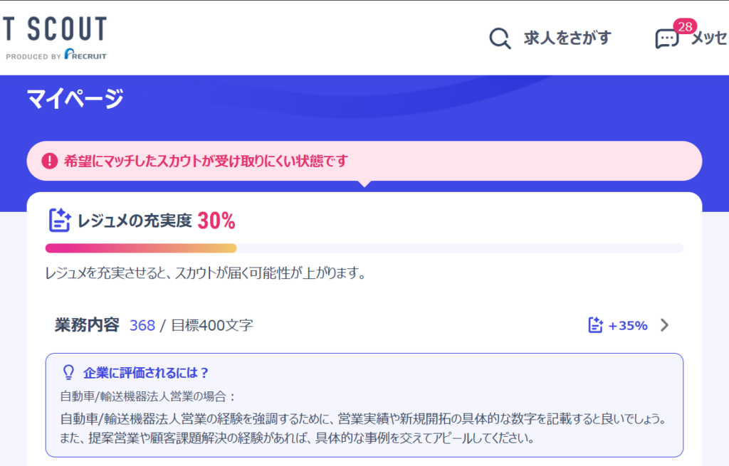 この状態でも、1日2件のスカウトが届くって、感覚的に多いと思いませんか?