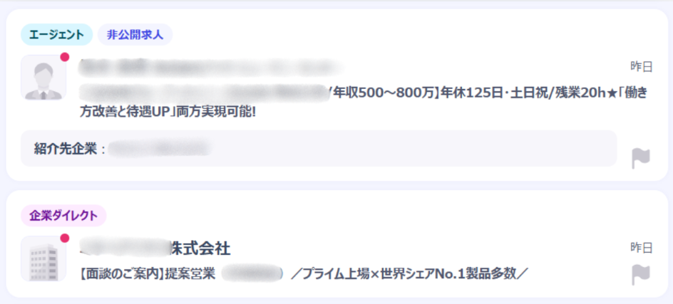 アイコンで明確に「エージェント」「企業ダイレクト」とわかるようになっています。