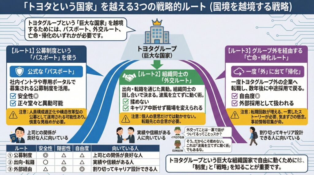 公募制度・出向・外部経由の3つのルートを軸に、自分に合った戦略を練ることがカギです。